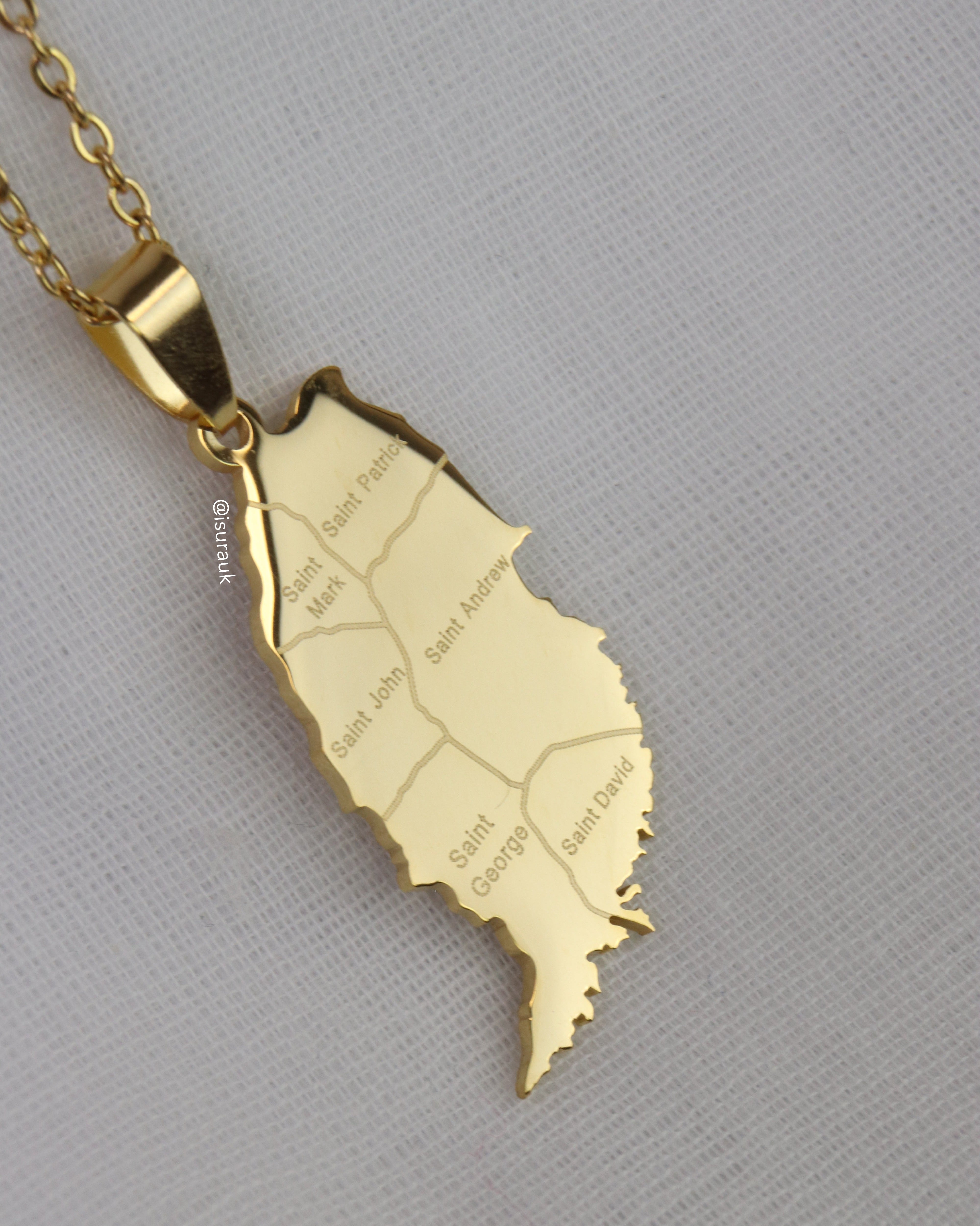 Elevate your style with our city map pendant, a meaningful and unique tribute to the vibrant cities of Grenada.